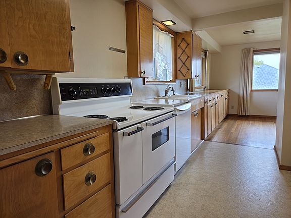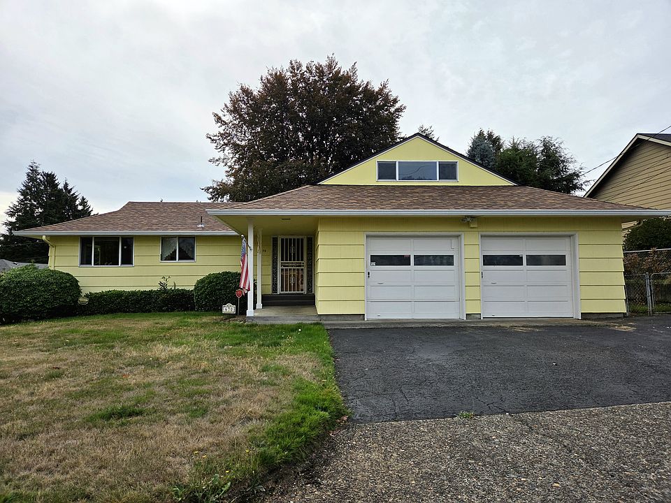 Cool retro style home in great condition with Mt. Hood views! New paint throughout the house, beautiful original hardwood floors and built ins! Nice big windows in the living room and lots of natural light. Master suite with his and hers closets. Two bedrooms on the main and additional bedroom and bonus room upstairs. Newer roof, gutters, water heater and HVAC. Full basement with extra refrigerator, nice workspace and exterior entrance. Covered patio looks over the large open backyard with mature landscaping.