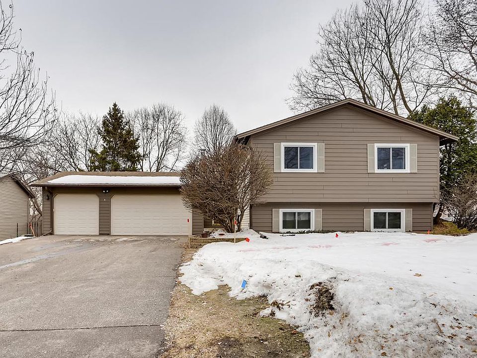 This beautiful split entry home has 6 bedrooms with 3 bathrooms and a 3 car garage. This home sits on a corner lots in a quiet neighborhood in Shoreview within Mounds View Schools. New flooring. in kitchen, dining room, and master bedroom. There is a private 3/4 master bath in the master bedroom along with 3 more bedrooms on 1 level. New paint throughout the home with 2 wood burning fireplaces; one on each level. Sunken living room with large windows allowing for plenty of sunshine. The kitchen and dining room are oversized with a sliding door off to the deck and stainless steel appliances. All new windows, patio door, front door, fire door and some siding replaced in 2016. Downstairs bathroom replaced in 2019 and mother in law suite added in 2012. New shower stall installed in 2019. 2 bedrooms on the lower level with updated carpet and so much storage. There is a large yard and storage shed with plenty of space to host family and friends!!!!