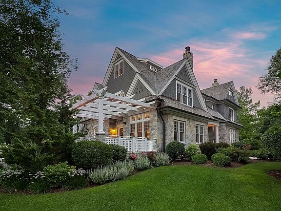 Introducing one of Glen Ellyn's most beautiful homes by the renowned Gits Home Builders, this above-grade Hamptons-style residence offers approximately 7,112 square feet of living space on over a third of an acre, where exquisite architectural details and timeless millwork set the tone for refined luxury. Designed for beauty, privacy, and practicality, this custom-built home blends state-of-the-art design with an inviting warmth that makes it truly extraordinary. The heart of the home is the oversized chef's kitchen featuring premium appliances including Wolf and Sub-Zero, custom cabinetry, and a large quartz island, seamlessly flowing into the grand family room-perfect for lively gatherings or quiet evenings. A charming dining room, complete with French doors opening to the side patio and a sparkling chandelier, sets the stage for elegant entertaining, while the stylish formal living room opens to a third patio with space for hosting guests outdoors. Upstairs, the primary suite is a private sanctuary with soaring ceilings, a spa-like en-suite bath featuring a standing tub, steam shower, and dual vanities, a custom oversized walk-in closet, and balcony. Three additional spacious bedrooms, all with radiant heated bedroom floors and luxurious baths, ensure comfort for family and guests alike. The beautifully finished third floor offers a spacious living area, wet bar with Sub-Zero beverage fridge, full bath, and custom office. The finished deep-pour basement is designed for entertaining with a full wet bar, wine cellar, media space, game areas, workout room, private guest suite, and ceiling height ideal for adding a golf simulator. Outdoor living is equally enchanting, with a secluded patio perfect for morning coffee, a hot tub for evening relaxation, and generous space for gatherings. There are 3 patios to choose from. Completing this masterpiece is a large three-car garage with room for storage, leading to a thoughtful mudroom and laundry combination. This rare opportunity in Glen Ellyn offers effortless living in a coveted location.