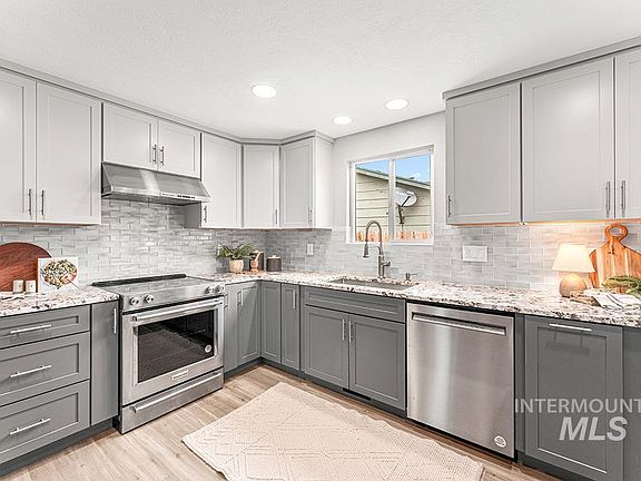 Tucked within a sweet enclave just east of Broadway Avenue, this beautifully remodeled home captures the best of Southeast Boise – vibrant & effortlessly livable. Set in a peaceful pocket, the location offers desirable quiet & convenience, just minutes from Boise State University, St. Luke’s, the Greenbelt, and Parkcenter’s dining and shopping. Whether you’re seeking a quick commute to downtown, steady rental appeal, or an upscale home close to loved ones at BSU, this property delivers comfort, style, and opportunity in equal measure. Thoughtfully refreshed throughout, the home blends timeless design with modern updates, including new kitchen and baths, appliances, roof, interior and exterior paint, and new landscaping, sod, irrigation, and fencing. The open great room invites everyday living with a cozy corner fireplace, rich flooring, and abundant light. The kitchen shines with granite countertops, stainless steel appliances, and shaker cabinetry in a chic two-tone palette. A trellis-covered patio and private backyard create an inviting outdoor retreat. Upstairs, three bedrooms offer privacy and flexibility, including a lovely primary suite with updated en-suite. Complete with a stylish full bath, convenient laundry, and large garage with RV/boat parking – this turnkey home defines easy living in one of Boise’s most special settings.