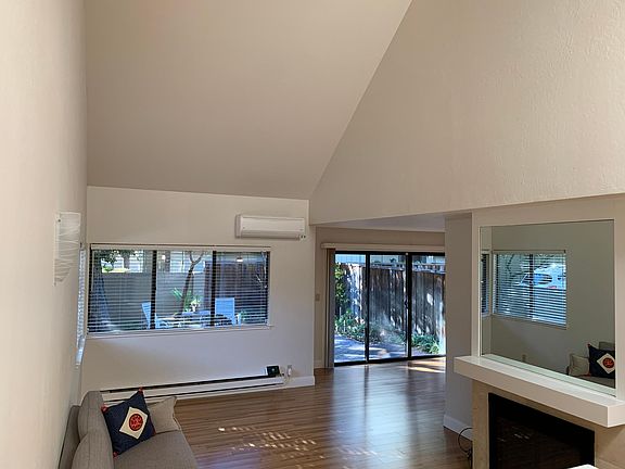 With a private backyard and huge attached two-car garage, this two-story duplex townhouse feels like a single family house. Owner completely renovated this house inside out and is listing it as a rental property for the first time since the renovation. Hardwood floors throughout, double pane windows and doors, Fujitsu AC units, cathedral ceiling in living room, new stainless steel fridge and cooking range, huge garage with a ton of storage, and even a bidet seat for the bathroom downstairs! This unit is very quietly located in the center of the complex. 5-minute walk to the Google campus near San Antonio Road, 5- minute drive to the Google HQ and easy access to Hwy 101 and 280. Great Palo Alto schools ( Fairmeadow Elementary, JLS and Gunn High. This unit was just professionally cleaned and ready for you to move in NOW. Renters are responsible for utilities. No pets (small dogs ok).