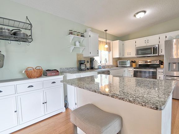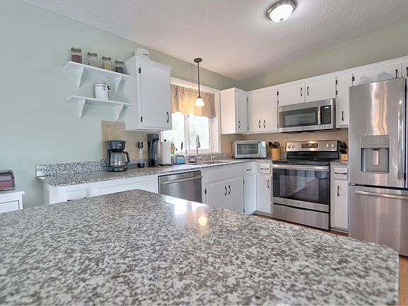Wonderful & spacious plan with vaults, beautifully updated kitchen w/center island, granite counters, and SS appliances. Living room offering large picture window and cozy fireplace adjacent to kitchen. Nice sized dining area with large family room all on upper level. Four nice sized bedrooms, 2 updated baths. Amazing lover level amusement room as well as play area. Many updates in home including 4¼ inch baseboard trim, enameled woodwork, LVT flooring, hwd floors upper level, mechanicals, new water heater and updated radon system, lighting & painting. Oversized 2 car garage and paver walkway. Conveniently located in a quiet cul-de-sac. Close to many parks and trails. This is one you’ll enjoy!