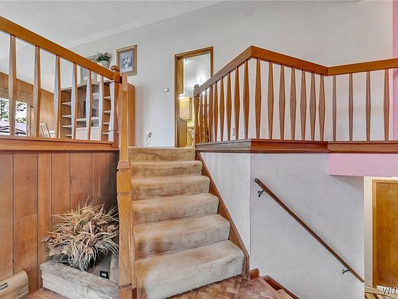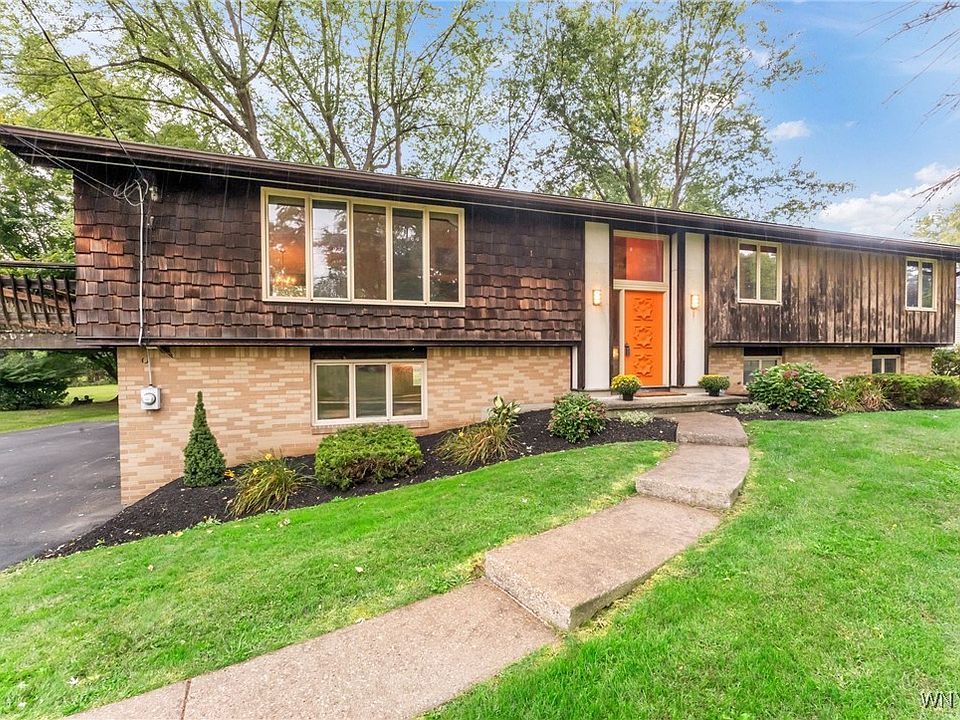 Fabulous custom built 4 br, 2.5 bath home offered by original owner with wonderful opportunity to customize. Great open floor plan with huge living room, dining room, vaulted ceilings and excellent natural light. Kitchen with tons of cabinets, counter space, island, storage, pantry and overlooking beautiful yard. 4 br's and 2 full baths complete 1st floor. Lower level has family room with sliding doors and great views to yard. Laundry room with backyard access, handy 2nd staircase to yard, 1/2 bath, perfect workshop with easy garage access for the hobbiest, handy person, or woodworker. Side load oversized 2.5 car garage with drain and service door to yard. custom features - front & rear staircases, side balcony, cedar siding, deep eaves, lots of storage, closets, built-in bedroom desks, central vac. This home was very thoughtfully designed, built with quality construction, and has the signature 'orange door'! Offers due 9/20 @11AM