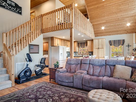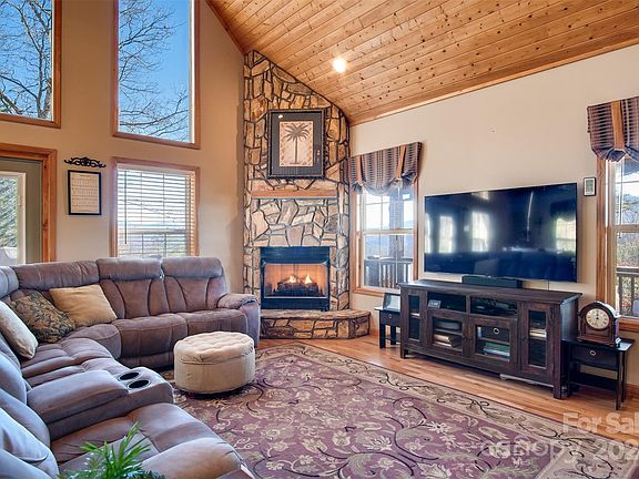 Surrounded by stunning views, this 4 bedroom, 3 bath cabin is nestled quietly on a peaceful mountain top in a well established neighborhood. Inside you'll find a stone gas fireplace, and an open concept living, dining and kitchen area with large windows to capitalize on your gorgeous surroundings. The primary ensuite is located on the main floor, along with a guest room and laundry. Upstairs, you'll find a reading nook, an office and two additional bedrooms. Spend your days on the deck and porch soaking in the surrounding view and firing up the grill for a cookout! Located a short distance from Dillsboro, Sylva, Cherokee and Franklin, this home is close to it all while offering serenity from the world.