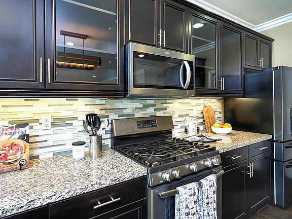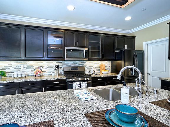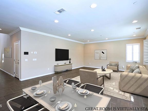 Welcome to this beautifully upgraded home, ideally situated in the prestigious master-planned community of Riverpark in The Collection. Designed with both sophistication and comfort in mind, this highly sought after residence offers 4 bedrooms plus a versatile loft that can serve as a 5th bedroom, private office, home gym, den, or additional living space, along with the convenience of a downstairs bedroom and bathroom - perfect for guests or multi-generational living. This home is truly turnkey. All it need is your finishing touch. The Seller is offering a $4500 credit to the Buyer, which can be applied toward flooring of their choice that reflects their personal style giving the Buyer an opportunity to customize this home and make it their very own.This open-concept layout features a warm and inviting gourmet kitchen, complete with granite countertops and tasteful backsplash, stainless appliances, ample cabinetry and a walk-in pantry. A spacious kitchen island with breakfast bar provides additional seating opening directly to the expansive great room and adjacent eat-in dining area creating the perfect space for entertaining or everyday living.Upstairs, the primary suite provides a serene retreat, featuring a generous walk-in closet, dual vanities, a soaking tub for relaxation and a separate shower. The upstairs layout also includes a laundry room for added convenience and a versatile loft space.Thoughtful details enhance this beautiful home throughout, including upgraded recessed lighting and dimmers, crown molding, plantation shutters, custom blinds, and new freshly painted interior in custom neutral tones. Practical upgrades include central air, a tankless water heater, whole-home water softener and reverse osmosis and a 2-car garage. Step outside to a backyard great for entertaining with a covered patio that has ambient lighting, two gas lines that can be used for your BBQ and firepit and professionally landscaped grounds with automatic sprinklers-ideal for relaxing or hosting friends.Ideally located near parks, scenic walking and biking trails, tennis and basketball courts, schools, playgrounds and a dog park, all just steps from home. Residents will enjoy the comfort and convenience of living near The Collection Shopping Center that offers: restaurants, shopping, a movie theater and even a bowling alley as well as easy freeway access and close to coastal beaches.