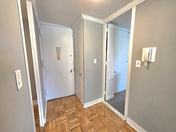Building offers full-service amenities including elevators, 24-hour doorman, on-site laundry room, and both indoor and outdoor parking directly connected to the property