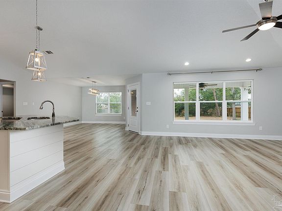 Welcome to your coastal paradise in Navarre, minutes from the beach. This 4 Bedroom, 2 full bath home features a huge kitchen with KitchenAid stainless appliances and recessed lighting opening into a large living room with vaulted ceiling. Primary bedroom features trey ceiling, with recessed lighting. Primary bathroom features separate walk-in shower, garden tub, 2 large walk-in closets, and double vanities. LVP flooring throughout the home, with porcelain tile in the bathrooms and laundry room. Spacious entertainment space abounds in this home, with a covered back patio perfect for firing up the grill. This magnificent home is located on a corner lot in Holley By the Sea. Amenities in this sought after community include pool, locker room, fishing pier, tennis courts, gym, sauna/steam room, and much more.