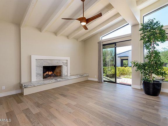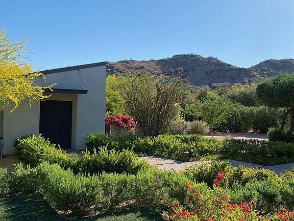 Superior central location in Paradise Valley. Jewel in the foothills of Mummy Mountain with beautiful views. Privately gated, autocourt. Walk to the new Ritz Resort and Palmaire. Contemporary/modern design, open floorpan with vaulted ceilings, wood and tileflooring, Kitchen in the heart of the home with 2 islands and bar gathering, 3 bed, exercise, room, built in dual office/homelearning center, Front and back covered patios, outdoor living room with fireplace, gazebo, renderings for 2 bed,2bath, 2 car garage guest house or add 4-8 car garage.Endless possibilities or just live in this beautiful home as is. No HOA. Owner agent