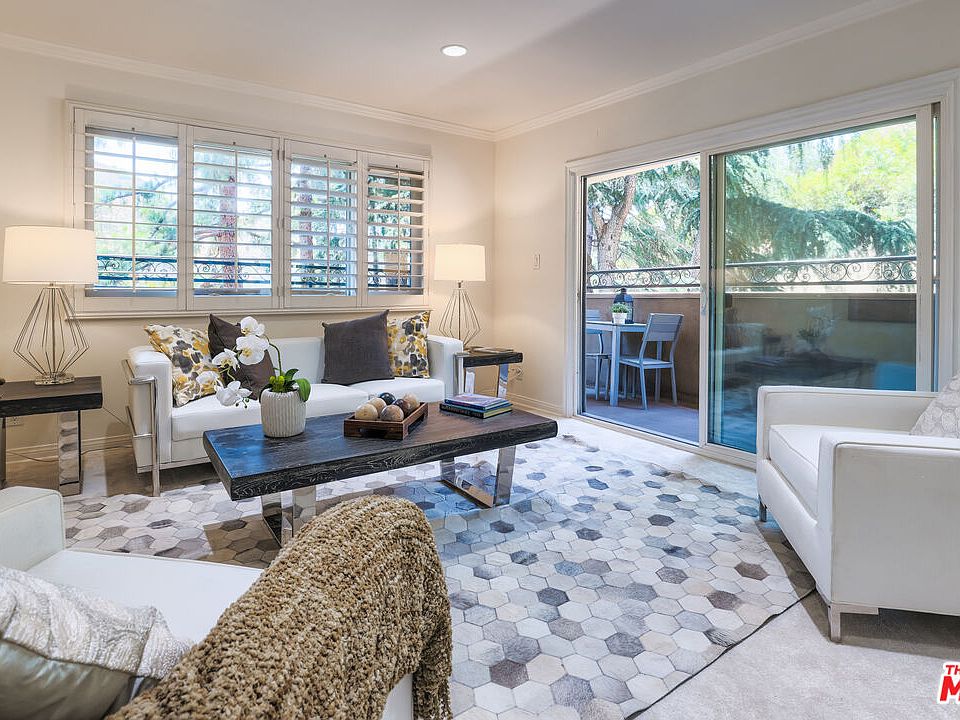 Beautifully renovated 2-bedroom, 2-bath Corner End-Unit with Office and wrap-around balcony. New floors, stainless steel appliances, solid wood cabinetry, Central AC, recessed lighting, extra storage and custom shutters. A cleverly converted pantry offers a private office with French door and built-in bookshelves. Enjoy your morning coffee on the wrap-around balcony overlooking a peaceful, tree-covered hillside where deer and rabbits wander. Resort-style amenities include pools, spa, fitness center, sauna, tennis and pickleball courts, a dog-friendly parklet, and clubhouse with ping pong, billiards, TV lounge, and kitchen. Steps from laundry, fitness center, saunas and pool. Lush landscaping, walking paths, and impeccably maintained grounds surround you with nature. Just off the Cahuenga Pass below Mulholland Drive, public transportation, minutes from the 101, Runyon Canyon, Hollywood and Highland, Universal City Walk and Hollywood Bowl. HOA dues cover water, sewer, trash, Earthquake insurance, side by side parking spaces, extra storage and high-speed internet.