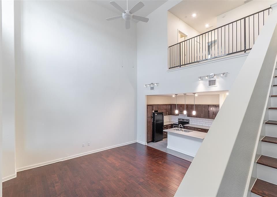 10 minutes to downtown. You have to see it in person to feel how open the living space is with the 22 foot high ceilings from the entry Open living space to kitchen. If you are looking for a smaller, very quiet and community oriented complex this is one of a kind. There are only 14 residential units and some small commercial units in the front of the community. We also have on site maintenance. WASHER AND DRYER INCLUDED. 4 Level 2 electric car charging stations available on a first come first serve basis. Wood flooring throughout except in the wet areas where you have tile. Solid surface counter tops and black appliances in the kitchen. Juliet balcony in two of the bedrooms and a large window in the third. If you are looking for a smaller, very quiet and community oriented complex this is one of a kind. There are only 14 residential units and some small commercial units in the front of the community. We also have on site maintenance. A 3D tour is available with this listing.
