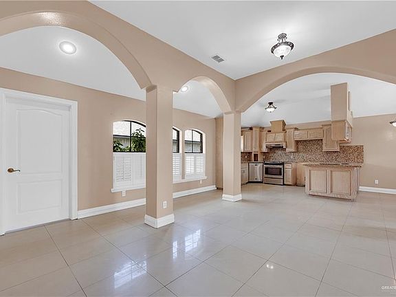 Welcome to this stunning 2-story home offering 3 spacious bedrooms, 2 full bathrooms, and 1 half bath, perfectly designed for comfort and style. Home is perfectly located in very desired North McAllen with a total of 3,802 square feet. Featuring high ceilings and an open-concept layout connecting the kitchen, breakfast nook, and living room, this home also offers a grand formal dining area for gatherings. The first floor showcases elegant porcelain tile, while the second floor and stairway feature rich hardwood flooring. The kitchen is a showstopper with custom cabinets, granite countertops, and a matching granite backsplash. Inside, you'll find an open and airy layout with a dedicated office, ideal for working from home or managing daily tasks. Enjoy outdoor living with a roofed balcony, covered patio, huge backyard with mature trees, a storage shed, and lawn sprinklers. Central AC/heat ensures year-round comfort. This is truly a must-see North McAllen gem!