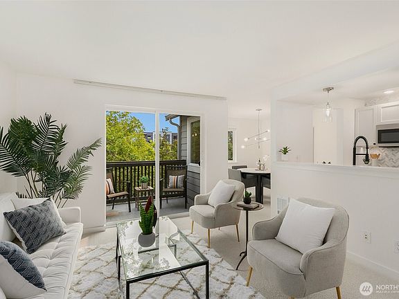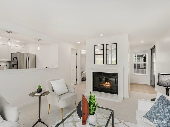 FULLY REMODELED & ideally located DT Kenmore, close to Lake WA! Just mins to Boat Launch, Burke Gilman trail, Rhododendron Park, cafe's, food & more. This centrally located 1 bed floorplan offers new interior paint, carpet, trim, lighting, Smart thermostat, open kitchen featuring quartz counters, tile backsplash, SS app all less than 5 years old, & updated sink & faucet. There is a roomy dedicated dining area + patio w storage closet off of the cozy living room w wood burning FP. BR has motion sensor closet lights w built-in shelving. Plus a Club House w/ pool & workout room. Well Run HOA! No rental cap. Cats / dogs allowed. Recent HOA updates: New roof, windows, sliding doors, deck & paint. In-unit full size laundry. Bike & Walkscore 69/70