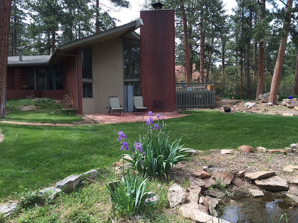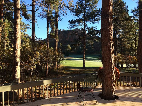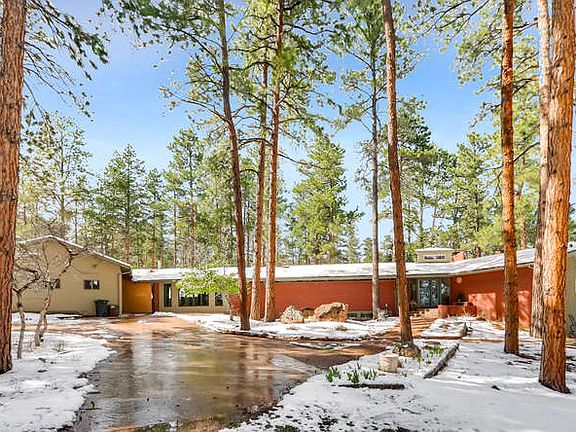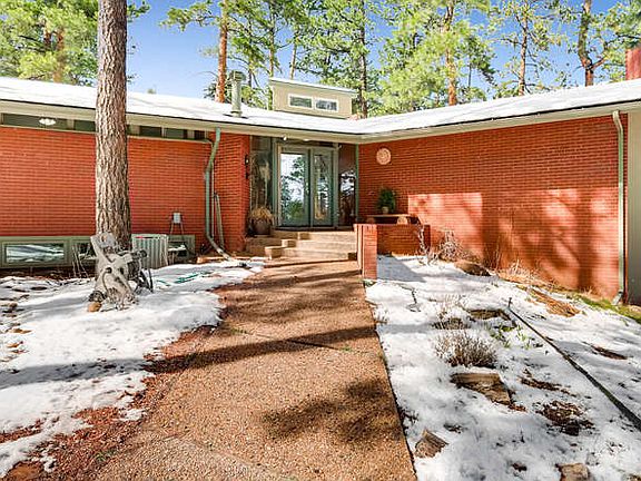 One-of-a-Kind Frank Lloyd Wright "Inspired" Home located ON the 3rd Fairway of Perry Park Golf Course. This home is filled with natural light and gorgeous views are seen in every window! Perfect for nature lovers! Surrounded by red rocks, towering Ponderosa Pines, Fir and Spruce Trees. Enjoy abundant wildlife and scenic views every season. Expansive deck is an entertainer's dream and no need to decorate thanks to Mother Nature. 3 bedroom/3 bath, 3-car garage plus shop and so much more! Exposed brick walls, ceiling fans, plantation shutters, hand troweled walls and custom features throughout this amazing home. Main floor master bedroom features vaulted ceilings and bath with custom walk in shower, double sinks, and nature inspired décor. Additional room attached to garage has baseboard heating and is ideal for a home office, playroom or workouts!