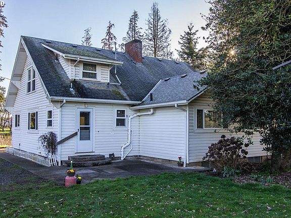 Wonderful Farmhouse & Property in same family for over 85 years. Huge rooms throughout w/massive unfinished bsmt w/outside entry & areas already prepared for an additional bedroom & bath. Portion of property in hazelnuts & another portion planted to a new pasture. Timber stand valued at approx. $160k. Huge 95x36 Equipment & Storage Outbuilding w/20x36 shop w/sliding door & concrete floor + 20' Lean-to for livestock. Video Tour #1 is walk through. Video Tour #2 is lesser quality 360 Degree Tour.