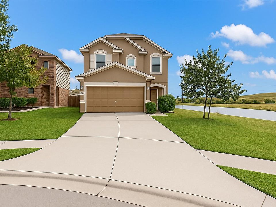 Welcome to a beautifully maintained two-story home in the highly desired Thornbury community, offering rare privacy and sweeping views of a greenbelt and tranquil pond—only one side neighbors and wide-open space right outside your backyard. Step inside to an inviting open-concept layout filled with natural light. The spacious living room features large picture windows, warm flooring throughout (no carpet!), and seamless flow into the dining area and kitchen. The kitchen is thoughtfully designed for cooking and entertaining, complete with granite countertops, stainless steel appliances, abundant cabinetry, and a breakfast bar overlooking the main living space. Upstairs, the generous primary suite is a true retreat—bright, airy, and oversized enough to include a sitting area or workspace. The ensuite bath features a dual vanity, soaking tub, and a walk-in closet. Two additional secondary bedrooms and a full bathroom complete the upper level. Outside, enjoy serene mornings and evenings from your private yard backing directly to the park-like greenbelt and community pond—a rare and peaceful setting in this area. Located just minutes from Samsung, Applied Materials, Dell, major highways, downtown Austin, and an array of shopping and dining options. The Thornbury neighborhood offers fantastic amenities including a community pool, playground, gym, and sports courts