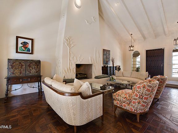 Not often will you find a property w/the defining character as this home. European yet modern details masterfully & thoughtfully adorn this private treasure. Be a part of the revival of the Spanish Colonial design this home in Cuernavaca offers. This property offers a prime end location with only one common wall. Enchanting side garden with easy & unique street access for all garden and home contractors. Once inside you will enjoy custom designed wood floors, hand crafted iron staircase(s), plank/beam ceilings, fireplace w/dramatic facade, main level bdrm suite w/custom built-ins. Cozy family & living room nestled near the private outdoor area w/ fireplace, BBQ & newly updated Mediterranean private garden. European kitchen w/custom cabinets, center island, top of the line appliances, bright bay window with access to the side garden. This residence offers 4 ensuite bedrooms. Follow the front custom iron staircase to 3 of the guest suites. First owner suite is spacious and private. Cozy fireplace with sitting area. Large shower can be converted to a steam shower. Center guestroom offers a bay window seat and private bath. Additional fourth bedroom suite is bright and spacious. Mountain views, large sitting area, two closets and a private secondary staircase leading to main living area. Space for elevator if important. Amenities offered to Cuernavaca residents include pool and spa. Tennis, pickleball courts. Gym and gathering area. Location is prime, near all that Scottsdale and Paradise Valley offers in shopping, restaurants and outdoor activities.