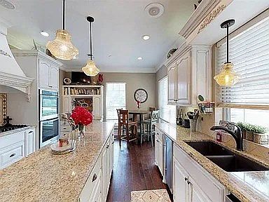 Huge walk in showerLarge primary suiteNeutral colorsSpa like on suitePrivate pondGranite countertopsStainless steel appliances