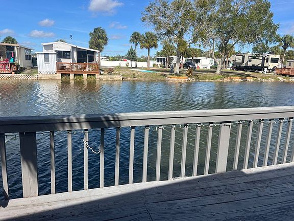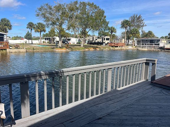 GET OUT OF THE COLD, COME ENJOY THIS PRISTINE HOME ON THE WATER! This is a FULLY FURNISHED 2-Bedroom, 1-Bathroom Park Model in Sundance Lakes RV Resort in Port Richey, Florida! Enjoy the tranquility of the Lake, sitting on your own DECK and feeling the Gulf Breeze! HIGHLIGHTS: Roof, Sealed, Mini-Split Heating & Cool Air Conditioner, Flooring, Vinyl Waterproof NEW 2025, Beadboard Walls NEW 2025, Florida Room Walls, Drywall, Florida Room Flooring Indoor/Outdoor Carpet NEW 2025, Electricity Updated, ALL NEW Furniture, Occasion Chairs, Sofa, Dining Room Table, Queen-Size Bed, Single Bed and More! Kitchen Double Stainless-Steel Sink, Newer Faucet, Breakfast Counter with a Stool, Bathroom Newer Vanity & Sink, Deep Bathtub & Shower, Toilet with Linen Cabinet, Hallway has Built-in Computer Desk, Hallway Pantry & Closets, PLENTY of Storage, Laundry Room with Washer & Dryer Hook-ups and ENJOY WAKING UP TO THE VIEW OF THE LAKE FROM YOUR BEDROOM! THIS HOME IS MOVE-IN READY, FRESHLY PAINTED, PRISTINE AND PRICED TO SELL QUICKLY! Sundance Lakes is an Adult Community, Pet Friendly allowing 1 Large Pet under 60 lbs. or 2 small Pets. It is an ACTIVE Park with many Amenities: Shuffleboard Courts, Pickleball Court, Billiards Hall, Heated Swimming Pool, Horseshoes, Dog Park, Clubhouse and much more! It is minutes away from Restaurants, Shops, Stores, Hudson Beach, Bayonet Point Regional Hospital and many indoor and outdoor activities! COME JOIN THE FUN!