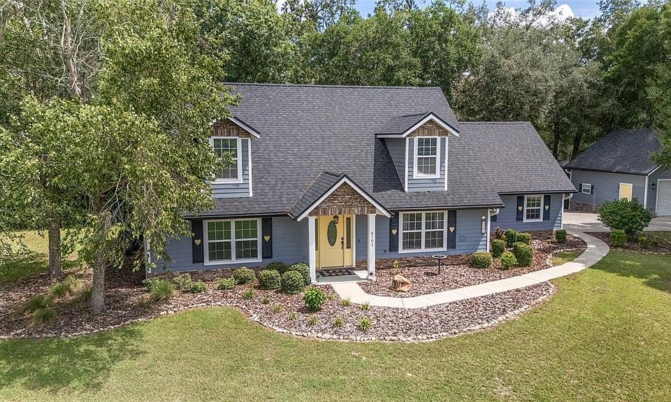 Move-In Ready in Belleview’s Golf Park Neighborhood Lovingly built and owned by one family, this well-maintained home sits on a full acre in a serene setting with wooded views and a quiet, park-like setting. Intentionally crafted, the two-story design offers a main-floor primary suite with a beautifully tiled walk-in shower, and walk in closet with custom shelving. The main floor also offers a versatile media room that can easily serve as a fourth bedroom or home office. Upstairs, you’ll find two large bedrooms with sunlit dormers, generous walk-in closets, a second full bath, and a bonus storage room—perfect for seasonal items, hobbies, or a dedicated workspace. The kitchen features real wood cabinetry, a classic tiled backsplash, and opens seamlessly to the breakfast nook and dining room, with wooded views. Step outside to a spacious yard, complete with a tree house for play. Enjoy ample parking and storage with both an attached 2-car garage and a detached 2-car garage—ideal for extra vehicles, equipment, or workshop space. Major updates include a new architectural shingle roof (Dec 2024) and a new HVAC system (June 2025) Ideally located just minutes from Ocala, Belleview, and The Villages, with convenient access to shopping, dining, parks, and medical care—this home offers comfort and natural beauty in a setting you’ll be proud to call home.