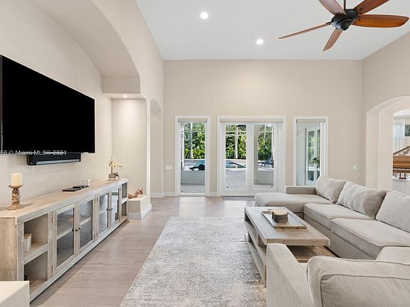 Magnificent One-Story Residence in the heart of Pinecrest. A sprawling 34,891 SF lot enveloped by mature landscaping for ultimate serenity and privacy. An exquisite floor plan comprising of 5 bedrooms, 4 full & 2 half bathrooms. Immerse yourself in the grandeur of voluminous ceilings and porcelain tile wood floors adorning the entire home, which include a gracious living room, formal dining area, and a family room. The gourmet chef's eat-in kitchen is outfitted with top-of-the-line appliances and offers views of pool and screened-in patio. The opulent primary suite features an expansive walk-in closet and luxurious spa bath. Additional amenities include impact glass doors/windows, a covered terrace, pool, and a 2-car garage, ensuring a lifestyle of utmost sophistication and convenience.