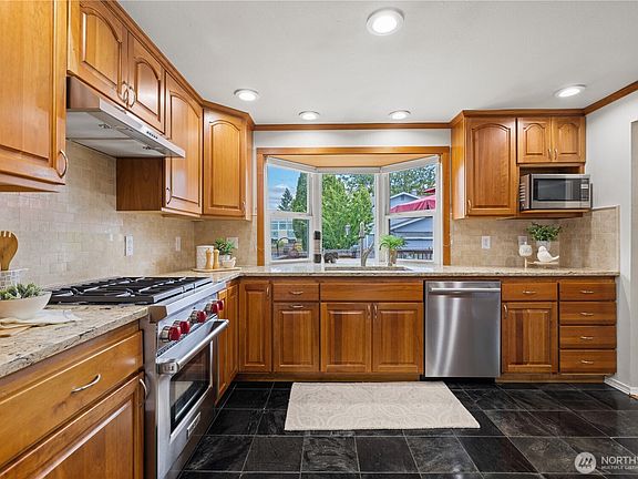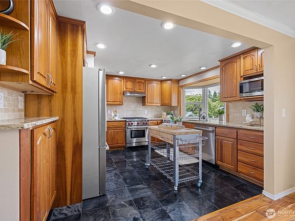 Welcome to this light-filled, beautifully updated home in one of Redmond’s most sought-after neighborhoods. The contemporary chef’s kitchen features Quartz counters and premium stainless appliances—perfect for cooking and entertaining. The king-size primary suite offers a spa-inspired bath & walk-in closet, while the upstairs laundry adds everyday ease. A spacious lower-level family room provides flexible living space for work or play. Step outside to a generous deck, lower patio, and fully fenced yard with mature landscaping and a charming greenhouse—ideal for gardening, relaxing, or gathering with friends. Located across from Grass Lawn Park & minutes to Microsoft. Pre-inspected and move-in ready—this is the one you’ve been waiting for.