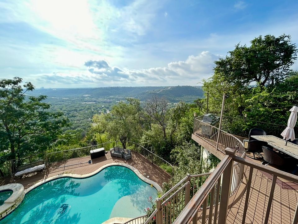 Fully furnished house. SPECTACULAR VIEWS & GORGEOUS POOL & SPA! Enjoy resort living backyard in this breathtaking setting! 15 minutes drive to Domain. 0.67 acre culdesac lot- 1500 sq ft of Trex decking - Soaring ceilings - two huge folding doors with hill country views - Beautiful hardwood flrs - Upgraded Quartz cntrtops - Stainless appl. - huge gameroom - Spacious upper level mstr suite w/viewing deck - Fabulous mstr bath w/frameless shower, gorgeous tile work, & custom cherry cabinets - Screened in porch.