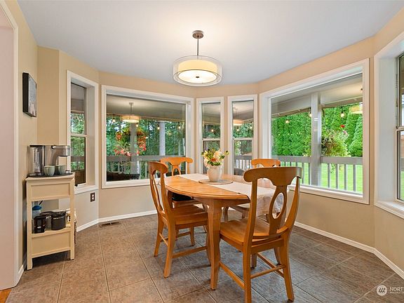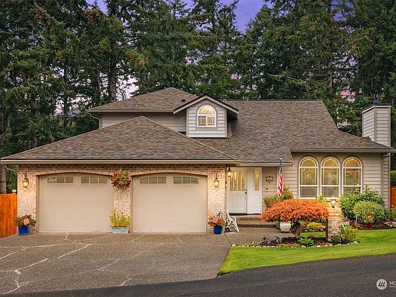 This beautifully designed 5-bed, 3.25-bath home features an open floor plan with formal spaces, perfect for modern living and accommodating everyone! Enjoy two fireplaces that create warm, inviting spaces throughout. The primary suite offers a walk-in closet and luxurious bathroom. A spacious bonus area, with a pool table, in the daylight basement opens to a covered patio and hot tub—ideal for relaxation and entertainment. Stunning hardwood and tile floors flow through the home, complemented by a wrap-around deck where you can enjoy the serenity and tranquil sounds of Chambers Creek. Situated on a fully fenced 1/4-acre lot in Creek Ridge, borders University Place! You have the benefit of University Place amenities without the high taxes.