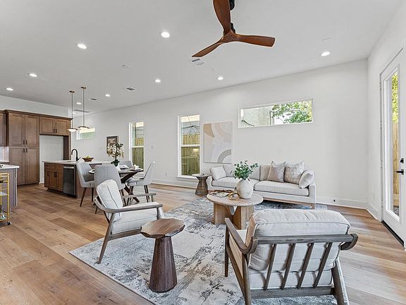 Only 1 left! This 2 story home in the Medical Center @ OST features open-concept first floor living with a unique floor plan that includes a guest suite. This suite has a full walk-in shower and a separate entry, making it ideal for in-laws, stair-challenged guests or Airbnb. This residence offers 4 bed/3 bath with contemporary interior design and modern finishes. Open kitchen boasts quartz countertops, mosaic tile backsplash, stainless-steel appliances and LVT flooring. Spacious primary bedroom has 20-foot cathedral ceilings, large covered balcony, walk-in closet and abundant natural light. Spa-like ensuite bath includes walk-in shower, dual vanities and soaking tub. Flex room and private driveways. Location is convenient, less than 1 mile from the new 52-acre Hines Development, Levit Green, which offers dining, shopping and outdoor spaces. Less than 2 miles from the new TMC3 Med Center development. Plans for over 255 homes to be built in this area. Strong rental market and no HOA!