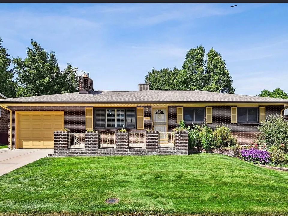 Freshly painted home, 4 bedrooms 3 bathrooms mid-century, brick ranch in Hutchinson Hills. Main floor features open kitchen, dining room and living room. Primary bedroom with 3/4 en-suite bathroom and 2 additional bedrooms and full, hall bathroom. Open rec room in the basement with cozy gas insert fireplace, 4th bedroom ( non-conforming) and laundry room. One car attached garage. Situated on a quiet lot with a spacious and private yard. Just steps from Bible Park, Colorado Athletic Club and RTD Lightrail along with easy access to I-25, I-225, DTC and Downtown Denver. Close to nearby schools, parks, trails, shopping and dining.