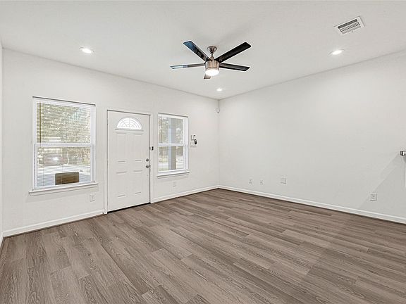This duplex featuring 3 bedrooms and 2 1/2 baths. Open floor plan with vinly plank floors downstairs. Kitchen w/ quartz countertops, stainless steel appliances and plenty of storage. Off the breakfast room has access to covered patio and private backyard. All bedrooms up. Primary with large walk in closet. En suite bath with glass frame shower. Secondary bedrooms with ceiling fans and good size closets. Security cameras for extra safety. Refrigerator, washer, and dryer included. Easy access to freeways, grocery store, and restaurants.