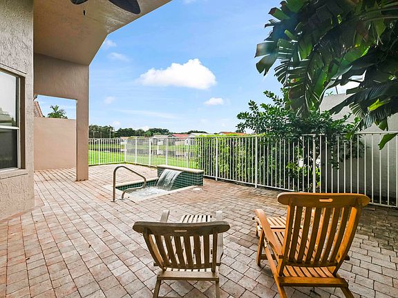 Embrace the ultimate Florida lifestyle in your private outdoor oasis. The home features a large paver patio with a covered area, offering a perfect spot for relaxation. The patio is highlighted by a private spa/hot tub with a tranquil waterfall feature, all set behind a fence that opens to a serene lake view. This home offers a fantastic blend of unique architectural details, spacious rooms, and an exceptional outdoor setting, making it the perfect place to live the comfortable, tropical life you've always wanted.
