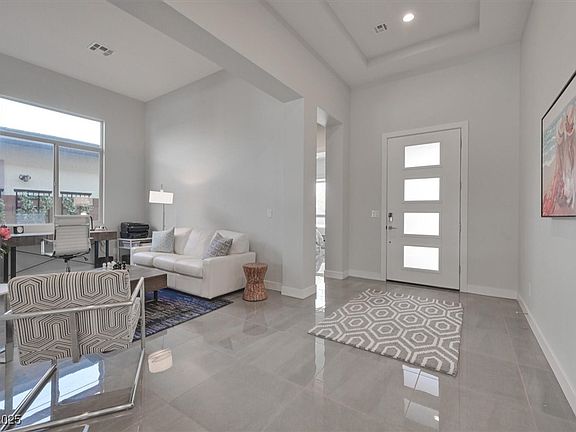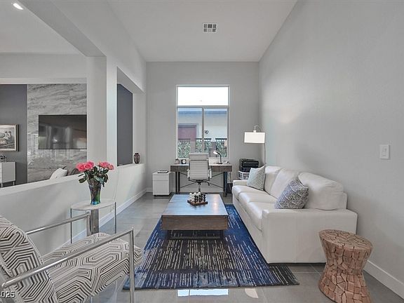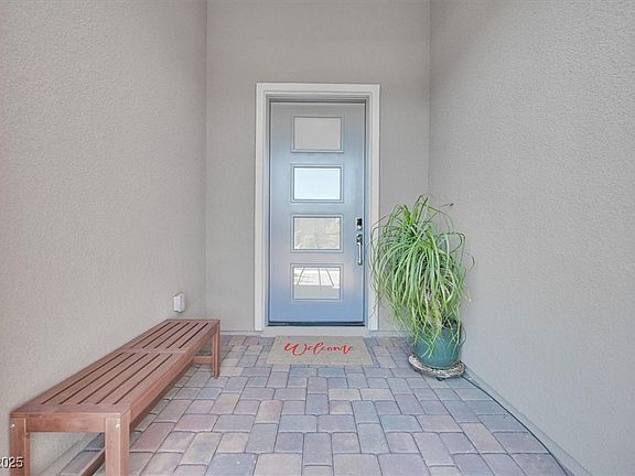 Behind the gates of Las Vegas’s premier 55+ community, this home blends modern design with resort-style comfort. The east-facing orientation welcomes soft morning light through expansive windows and stackable sliding doors, creating a seamless flow to the private backyard oasis. Inside, soaring ceilings, designer finishes, and an open floor plan enhance the sense of space and light. Two elegant bedrooms and two luxe baths offer both style and serenity, while every detail shows meticulous care and quality.