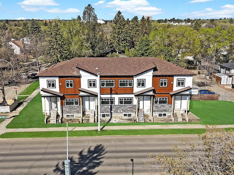 OCCUPANCY APPROVED! Exclusive Investment Opportunity Near the UNIVERSITY OF ALBERTA! Discover this brand-new EAST facing 4PLEX with 4 legal basement suites, thoughtfully raised to maximize natural light in the lower-level units—offering a bright and welcoming atmosphere rarely found in basement suites! This 6600+ sq.ft. property boasts an upscale interior and exterior, featuring luxury vinyl flooring on the main and basement levels, plush carpeting on the second floor, and 9 ft. ceilings throughout for a spacious feel. The modern two-tone kitchen cabinets, quartz countertops, and sleek tile-finished bathrooms elevate the elegance. Built with energy efficiency in mind, this property includes triple-pane windows, solar roof vents, 97% efficient furnace, tankless water heating etc. ensuring lower utility costs. A concrete parking pad will be completed for added convenience.