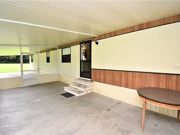 NEED ROOM TO ROAM? This delightful 2/2 mobile home sits on 2.62 acres on a paved road. Lots of room for storage for all your toys. Possibilities are endless! yet it's Close to Everything! The home is in perfect condition. There are two bedrooms and two baths located at opposite ends of the home. Good privacy! The Living room, Dining, and kitchen areas are located in the center of the home. The kitchen and dining area have ceramic tile flooring. The Kitchen features an island with built in cook top, vent fan, pantry cabinet, and breakfast bar. There is also a refrigerator, washer, dryer, and electric water heater included in the sale. The dinette area provides access to the yard with a sliding glass door. The two bedrooms have built in closets and dressers. The attached shed houses the laundry area and appliances, and has a work bench. The LARGE screened porch measures 24 x 12. Plenty of entertaining area! Enclosed Steel Garage, 48x40. There is a well for your water, and septic tank. No LARGE UTILITY costs! Come see this CUTIE before it's GONE!