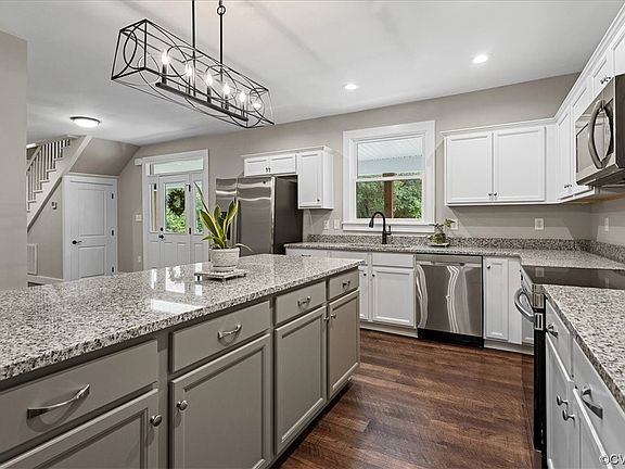 Located in the heart of Church Rd, you'll truly be charmed by this newly renovated, modern-day farmhouse! Enter the property on the circular driveway that leads to this stunning 2-story house with 12-cedar columns on a wrap-around porch. The first floor features new kitchen cabinets, granite countertops, new appliances and a large island that all opens up to the spacious living room. The enormous laundry room has plenty of extra space for additional storage. This home also features a 1st floor primary bedroom and a private full bathroom! The original 1927 staircase was restored and leads to 4 additional bedrooms with wall-to-wall carpet and large closets. New HVAC, new windows, new roof, new hot water heater and a fully encapsulated crawl space, are just a few of the upgrades. Ask your agent for a FULL list to appreciate all that went into transforming this home! Centrally located less than 30 mins from Fort Barfoot and Fort Gregg-Adams. Also, in the Midway School District! ** Some of the photos featured are virtually staged**