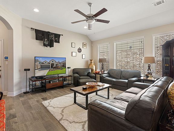 Sweetwater single story home backing to greenbelt with hill country views. 3 Bedrooms, 2 full bathrooms, study, living, dining, kitchen, laundry. Covered back patio and fenced backyard. No carpet, except in closets. Floors are wood plank tile. Immaculate condition, shows like new. Pet free home.