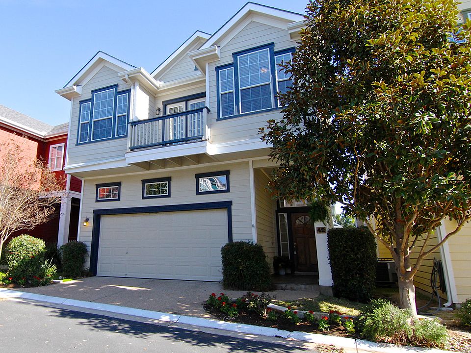 Lock and leave, HOA maintains landscaping. Gated, secluded, 46-unit community of single-family detached homes, 15 minutes to downtown. Community pool, dog park. Almost 70% owner-occupied. Open layout downstairs for entertaining, including wood floors, wood-burning fireplace, granite counters, breakfast bar, abundant cabinets, gas cooktop. Upstairs master suite with sitting area and private bath, separated from other 2 bedrooms/bath by second living area. Lots of natural light throughout. Extended covered back patio. Close to the community pool.