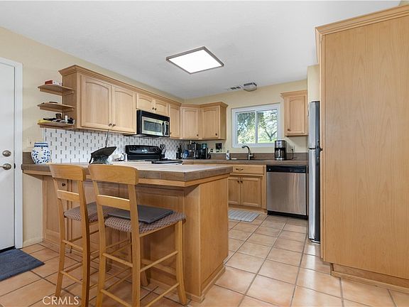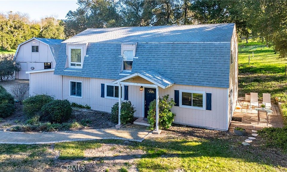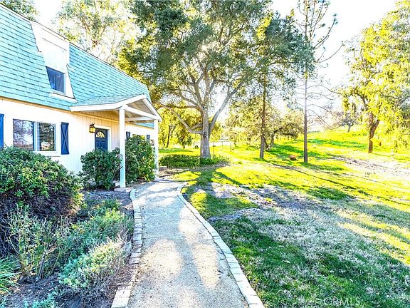 If a picture is worth a thousand words, this ranchette speaks volumes! This charming farm-style 3-bedroom, 3-bath home on 5.47 acres perfectly blends aesthetics and function, offering your own private retreat. The kitchen, with its beautiful tiled countertops, backsplash, and custom maple cabinets, is the heart of the home, ideal for serving delicious meals at the breakfast bar or in the dining area. Guests will appreciate the lovely tiled half bath, and the spacious living room opens through a sliding glass door to a delightful patio for outdoor living. Upstairs, the master bedroom suite is a true haven, with tile work that’s a masterpiece—matched by the equally impressive upstairs hall bath featuring an artist-designed arch above the tub/shower. The bedrooms are spacious and inviting, perfect for unwinding after a day’s activities on the ranch. Powered by an owner-owned solar array with Tesla batteries supplementing PG&E, the home also boasts a new roof on the attached 2-car garage and a newer roof on the main house. The barn features custom stables to shelter animals, a bathroom, electricity, a tack room, and a bonus area upstairs, plus a riding arena and a hay/feed/tractor shed. The property is graced with beautiful oak trees and landscaping and is truly priced to sell.
