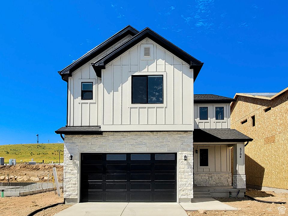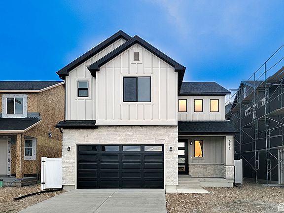 For Open Houses, please check in at 6882 S Holly Lake Drive, West Jordan, UT 84081! GAMBEL OAK Plan with popular Farmhouse Exterior Styling. You'll get some amazing included features for the price: Energy Star certified features, 2x6 exterior wall construction, Active Radon Mitigation system, a dual HVAC system to more efficiently heat and cool your home, substantially upgraded insulation in the attic and walls, dual glazed Low-E argon treated windows, and an Energy Recovery Ventilator to help with air circulation and overall temperature comfort. If you could design this home yourself, this would be it! You'll HAVE to check out the main shower! It's HUGE!!. Your new home will boast 9' ceilings on the main floor and the kitchen has upgraded cabinets and a waterfall edge on the quartz countertops on the kitchen island. The second floor has a spacious loft overlooking the entryway. As you enter the home, you are greeted with a soaring entryway that gives a and airy open feeling. Enjoy a spa experience in your primary bathroom with an extremely large walk in shower with beautifully upgraded tile. Vaulted ceilings in your primary bedroom will provide an elevated experience in your personal sanctuary. This home is even ready for your furry friend with a fully fenced yard! MOVE IN READY and available to show anytime through Aligned Showings. See agent for details about our current affiliated lender incentive; rates as low as 3.99%! Contact your sales pro for details or info on getting in touch with the builder's affiliated lender, CLM Mortgage to take advantage of this amazing deal.