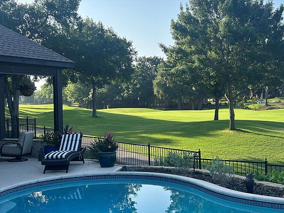 This beautifully renovated, nearly 3000 square foot single-story home in The Hills at Prestonwood offers an unparalleled golf course living experience. Situated on prime lot overlooking the 11th fairway and green, you'll enjoy panoramic views of the meticulously maintained landscape. The interior has been thoughtfully opened up to create seamless flow between the spacious family room and beautifully updated kitchen. The heart of the home, the kitchen, features a stunning quartz island perfect for entertaining, along with updated stainless appliances and custom cabinetry extending to ceiling, providing ample storage. A striking tiled double sided, see-thru fireplace reaching the ceiling serves as a focal point, separating the family room and another versatile living space, perfect for game room or sophisticated bourbon lounge. Renovations extend throughout, with all windows and frames replaced and adorned with plantation shutters. The expansive plate windows in the family room frame the breathtaking golf course views, seamlessly blending indoor and outdoor living. Step outside to a private swimming pool set amidst beautiful landscaping with landscape lighting, designed to maximize privacy and create a serene outdoor oasis. Enjoy watching birds and immersing yourself in nature while relaxing in your expansive outdoor living space, where existing roofline was extended for covered patio. The outdoor Living area is pre-wired for infrared heaters and has sun-privacy screens on west and east sides. Master suite views the golf course and has been luxuriously updated with dual vanities, a separate soaking tub, and a sleek shower with seamless door, creating a spa-like retreat. Remaining three bedrooms are generously sized, one being a flex space. This home offers a lifestyle of sophistication and comfort within a highly sought-after golf community. **There will be No Open Houses. If you want a private viewing, please contact Your Agent or the Listing Agent **