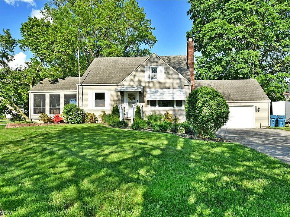 A showstopping Boardman residence, this heavily updated and surprised packed Cape Cod is heating things up in a hurry! Perfectly showcases along a sweeping corner lot, this must-see home is the object of attraction with manicured landscaping and a perfected sunroom that joins a secluded rear patio. Step inside to reveal the sun washed living room complete with a brick trimmed fireplace and rustic, hardwood styled flooring. Sculpted archways lead into the nearby formal dining room with its ornate hanging light. The screened in sunroom awaits just steps away, beckoning to entertain with its oversized window openings. Meanwhile, the daring kitchen offers its wraparound stone countertops and sleek cabinetry that pairs masterfully with its tiled backsplash and stainless-steel appliances. A shiplap style runs overhead as decorative lighting casts a warm luminance. Completing the first floor, a lavish full bath with pedestal vanity is accompanied by an inviting guest bedroom. Upstairs, a second bedroom is located just outside the landing with its bright and spacious layout. The oversized master suite includes a cozy lounge area and a barn door accessed full bath with an elegantly tiled tub sat across from a matching vanity. At the basement level, a finished family area is adorned in a distressed wood accent wall as carpeted flooring runs up to the fireplace. Rec space, a workshop area and laundry services round things out.