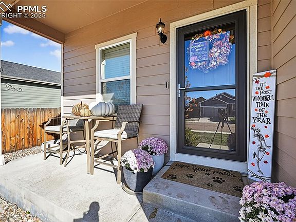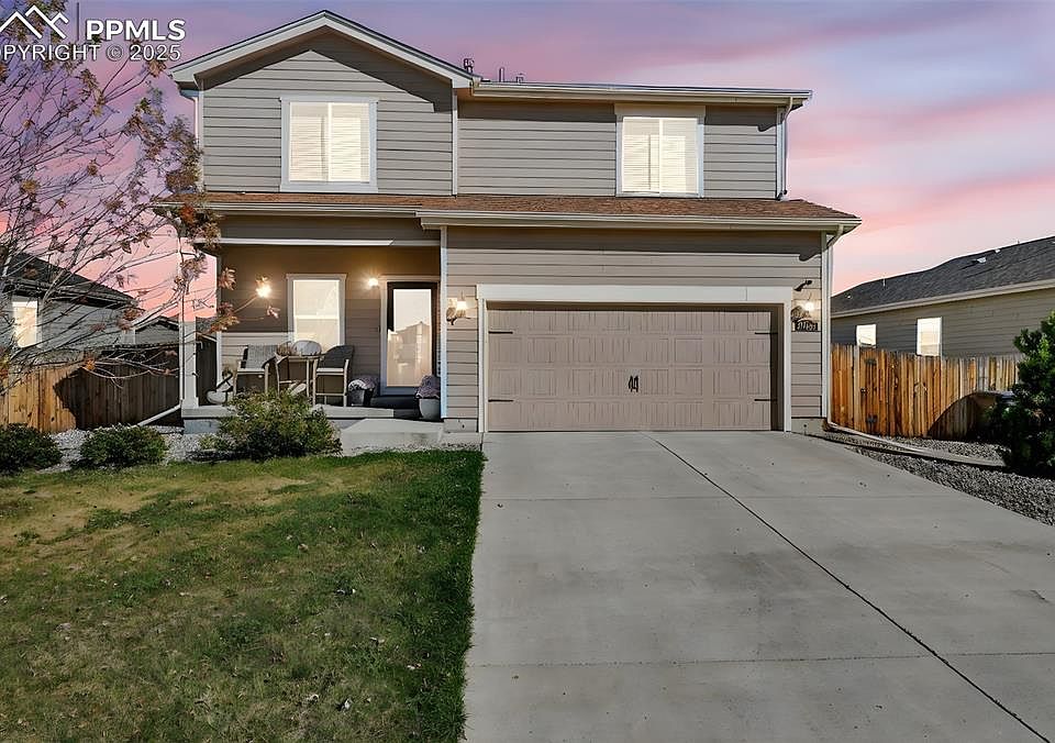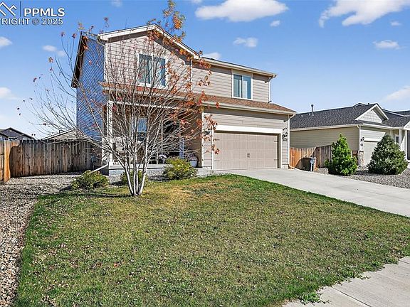 This beautifully maintained residence features a bright, open main level with modern, timeless finishes throughout. The spacious great room flows seamlessly into a large U-shaped kitchen with a breakfast bar, gas range, pantry, and adjoining dining area—perfect for everyday living and entertaining. Upstairs, you’ll find a versatile loft ideal for a home office, a generous primary suite, convenient upper-level laundry, and two additional bedrooms with a full hall bath. The fully fenced backyard offers an established lawn and automatic sprinkler system. Enjoy a quiet setting with easy access to military bases, shopping, and I-25. Generous seller concessions.