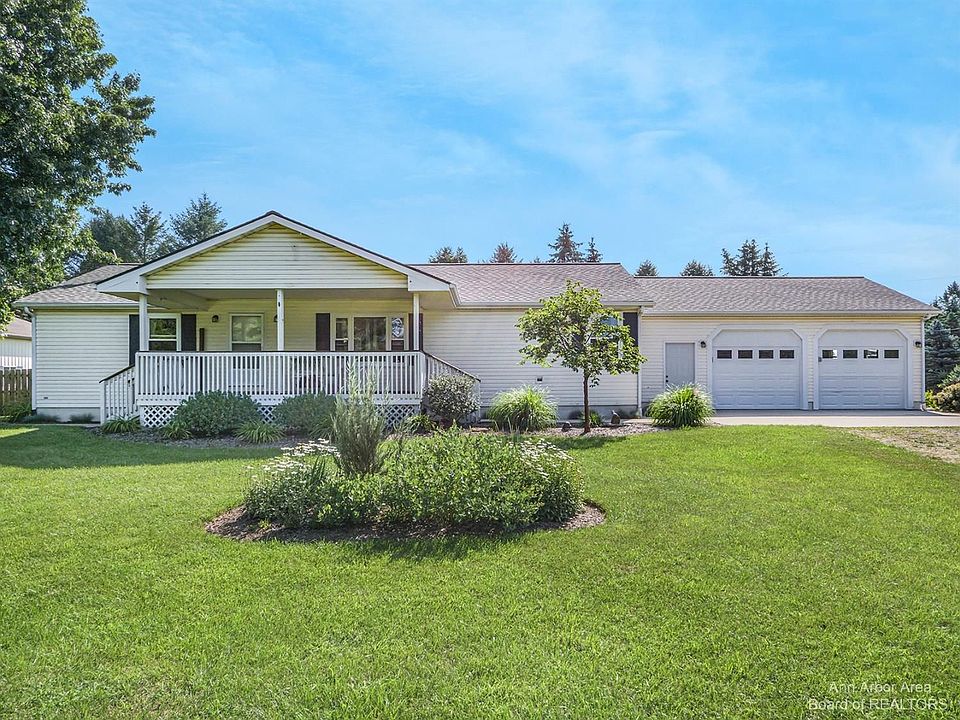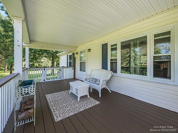 Lovely open concept ranch with numerous quality updates. Complete kitchen renovation includes bamboo flooring, Corian counters, pantry, and new appliances. Enjoy the convenience of the main floor laundry area. Both full bathrooms are also stylishly renovated. New flooring throughout. 3 nice sized bedrooms all have walk in closets. All newer windows and door wall, roof and skylights, 50 gallon water heater, sump pump, well pump and RO filter, and lighting have been added throughout this manufactured home. The full basement has a finished music room. Enjoy your morning coffee or the setting sun on either the covered large front porch or the spacious back deck. Nothing for you to do except move in! In addition to the immaculate 2 car garage you will enjoy the 1200 sq ft pole barn with 240 electrical service and water surrounded by the beautifully landscaped and fenced back yard on this 2 acre parcel with mature trees in both the front and back yards.
