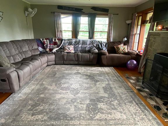 Rock sided farmhouse with 2 ponds always wet, 2 tractor barns, sheds, garden spot, fenced for livestock, dog pen, guest house, well house, covered patio, storm cellar and more. This home offers a rock fireplace with stove, hardwoods, solid wood doors, 2 BRs, 1 bath, large laundry room, dining, kitchen with island and covered porch. Peaceful setting just 13 minutes to Langley. Seasonal view of the upper Lake Hudson. Make this your own country home. (ask about additional acreage)
