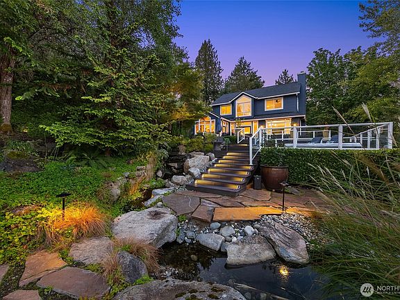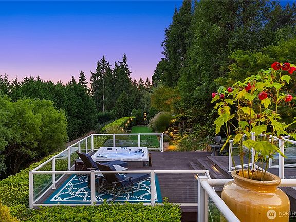 Enjoy stellar privacy & southern exposure on 1+ acres of manicured, park-like grounds featuring 3 fountains, Bocce court & a secluded firepit area with Mt. Rainier views. Custom-built by Andy Mueller and extensively updated, the home features high ceilings, extensive windows & a chef’s kitchen with Wolf range & 48” Sub-Zero fridge. Fantastic floorplan featuring 2 primary suites: 1 on the main level & 1 upstairs with stunning view of Mt. Rainier, plus a lower-level guest area with separate entry. Large rec/family room upstairs! Living room French doors open to multi-level decks & a hot tub. Coveted south-end location, tucked away off a quiet cul-de-sac just mins from Lynwood Center & Gazzam Lake. Over $200K in improvements in the last year!