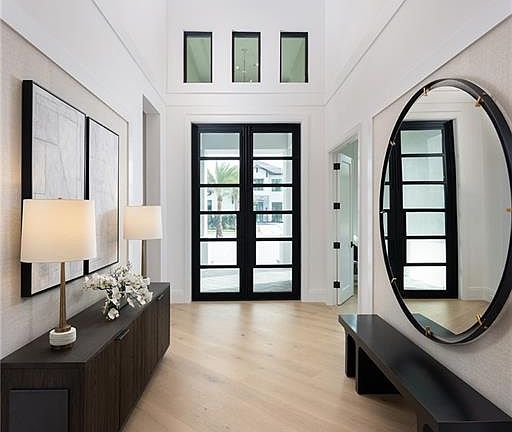 DESIGNER FURNISHED AND MOVE-IN READY HOME AVAILABLE NOW! Seagate Development Group and Theory Design present the professionally designed and furnished Laguna Model Custom Home in PALISADES, one of Seagate’s newest, gated communities in the heart of Naples. This custom home is a collaboration between Seagate Development Group and Theory Design with Architecture by JMDG Architecture, and custom landscape & hardscape design by Outside Productions. Enjoy a pacific modern design with steel gray and neutral tones with black accents, warm European White Oak floors, tray ceilings and textured wallcovering accents. This custom home features 3 bedrooms, study, 3 full and 2 half baths, and an oversized 3-car garage. The outdoor living area features electric roll down screens, tongue and groove stained ceiling, outdoor kitchen, stone fireplace, turf sun deck, pool bath, custom pool with water feature wall, spa and lush landscaping. The home has an open floor plan with tray ceilings throughout. The gourmet kitchen includes two tone cabinetry, glass upper cabinets with lighting, tile backsplash, custom hood, under cabinet lighting, island with 3” mitered waterfall countertop, paneled Sub Zero/Wolf appliance package, windows for natural lighting, and walk-in pantry with cabinetry and refrigerator. The great room includes a bar with an ice maker and undercounter beverage refrigerator. The master suite features a sitting area with sliding glass doors leading to the covered lanai. The master bathroom features honed marble floors and comes equipped with Kohler plumbing fixtures including a private water closet, soaking tub, spacious shower with 3 showerheads and a linen closet. Additional luxury features include 9.45” European White Oak wood floor throughout, custom built-in closets, 1 ¾” solid interior doors, Emtek door hardware, linear HVAC diffusers in common areas, level 5 drywall, double pane Andersen impact windows & doors, Control4 home automation system, sound system, spray foam insulation, custom iron front door, natural gas, lush landscaping, and interior designer selected custom light fixtures and furnishings. Palisades is an enclave of 25 custom homes situated in a premier Naples location with abundant amenities. Palisades is only minutes away from Mercato, Waterside Shops, 2 Ritz-Carltons, and other exceptional shopping, dining, and beachfront destinations. Seagate’s portfolio of companies specialize in custom homes, renovations, interior design, estate management, and land development. Together, bringing exceptional concierge levels of service to everything we do. SALES CENTER OPEN DAILY.