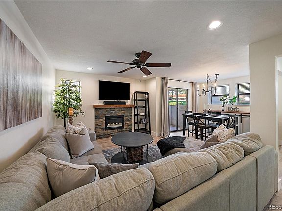 PRICE REFRESHED! Welcome to this beautifully updated home in the Desirable Stony Creek Community featuring an open floor plan with fresh paint, recessed lighting, ceiling fan, and an electric fireplace with wood mantle. The living and dining areas flow seamlessly with new light wood LVP flooring, a custom dining hutch perfect for a wine or whiskey bar, and sliding doors leading to a private patio. The fully renovated kitchen is a showstopper with brand-new white shaker cabinets, elegant white quartz countertops, new light wood LVP flooring, recessed lighting, and stainless steel appliances. The full bathroom has been updated with stylish tile, a tiled shower, fresh paint, and modern vanity and lighting. The spacious primary bedroom offers new carpet, fresh paint, and a huge walk-in closet, while the second bedroom features a custom closet and new carpet. A well-designed laundry room with cabinets, shelves, a newer water heater, Goodman furnace, and full-size washer/dryer completes the main level. Move-in ready with thoughtful upgrades throughout—this home is ready to impress! Easy access to shopping, dining, C-470, brewery, Dutch Creek Trail and Clement Park! Don't miss an opportunity to live in the heart of Littleton in a quiet, friendly neighborhood close to the mountains!