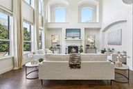 Modern drapesVentless gas fireplaceFully lit backyardOutdoor kitchenHardwood floorsCustom blindsTop-tier appliances