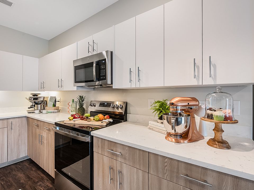 - Exterior features: Brand New 1 and 2 Bedroom Apartment Homes, Cable included in rent, Detachable Garages, Flexible Lease, Flooring: Laminate, Flooring: Wood, Heating: Electric, High-speed Internet Ready, Internet included in rent, Large Spacious Closets, Less Than One Year Lease, More Than One Year Lease, On-Site Management, One Year Lease, Online Maintenance Portal, Online Rent Payment, Pet Park, Picnic Area, QUARTZ COUNTERTOPS, Rooftop Deck, Six Month Lease, Spacious Bedrooms, Stainless Steel Appliances, TV Lounge, View Type: City, View Type: Wooded, WALK-IN SHOWERS
