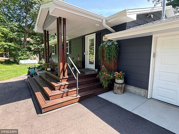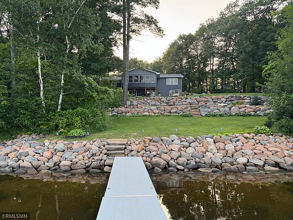 Premier Big Pine Lake Home w/ 3 BR & 3 BA walkout rambler w/ 3 room bunk house, 4 car garage, storage shed & boathouse/swim shed on an 1.1062 acres and 183ft of Big Pine Lake sandy frontage and very private setting between neighbors. Home was completely remodeled from the top down, with LVP planking, 12 ft kitchen island surrounded by natural maple custom cabinets w/ european sink, SS energy star appliances, custom built-in cabinets located in dining room and family room, wood fireplace converted to gas, two additions added to home in 2022, heated 3-season porch with vaulted ceiling, main floor laundry, wet bar w/copper sink, updated electric, storage room finished under heated 4 car garage, new windows, doors, insulation, most siding, roofs on storage shed and home/garages, plus the septic is compliant. Custom-made sofa for the main floor living room & most furniture included since it was either made or designed for this great home. Drain tile, sump pump and radon system added in 2021 to protect you. Cedar lined two car garage so you get no moths & very few bugs. Plus new asphalt driveway in 2024, geo-cell addrd to lake side hill plus professional boulder landscaping to give you a natural lake appearance plus $15,000 floe dock & $5,000 lake aerator included. There is so many updates and huge improvements made to this like new lake home.